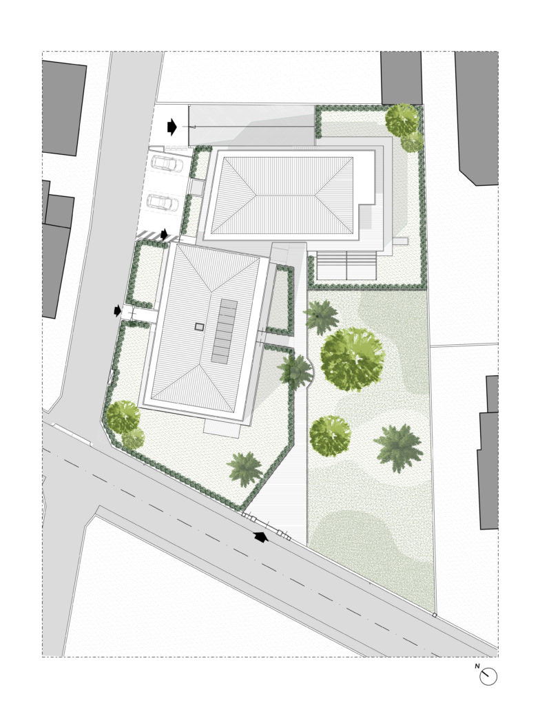 Come memoria storica e focale visiva verso il parco, si è decisa di mantenere la struttura monumentale dell’accesso esistente su Via Cavalli che perde la sua funzione carrale riaffermando quella di ingresso ai pedoni. Le essenze arboree del parco sono state tutte conservate per mantenere la memoria di questo spazio verde all’interno del tessuto urbano.