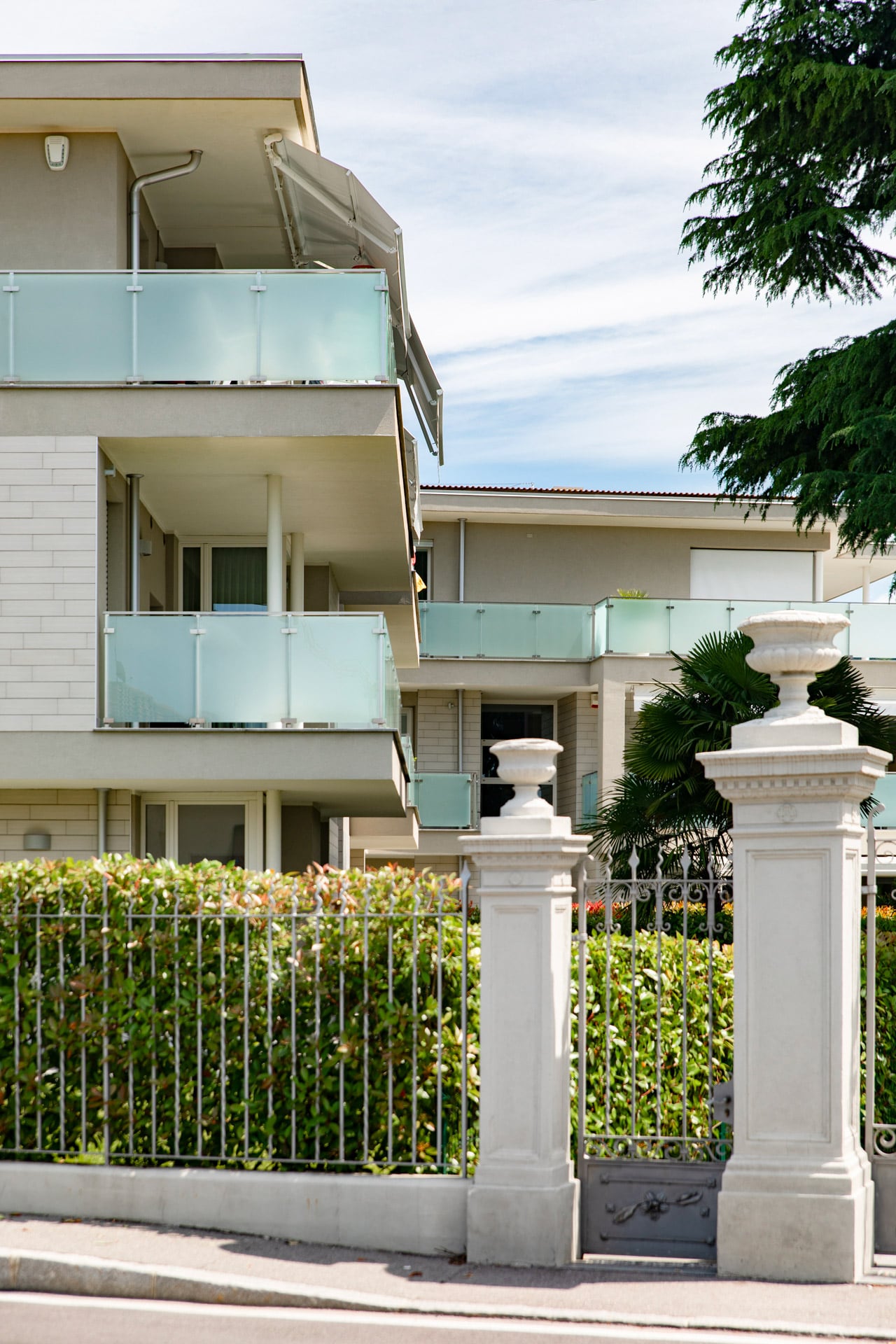 Il lotto oggetto di intervento era occupato da un edificio residenziale realizzato negli anni 1920-1930, le cui facciate esterne erano “decorate” con elementi in stile “Liberty”. Ma ciò che valorizzava il suo aspetto era la presenza di piantumazione di un certo pregio, quali : quattro cedri dell’himalaya, e 12 palme tipo “Washintonia filifera”, e la recinzione costituita da pilastri e cancelli decorativi.